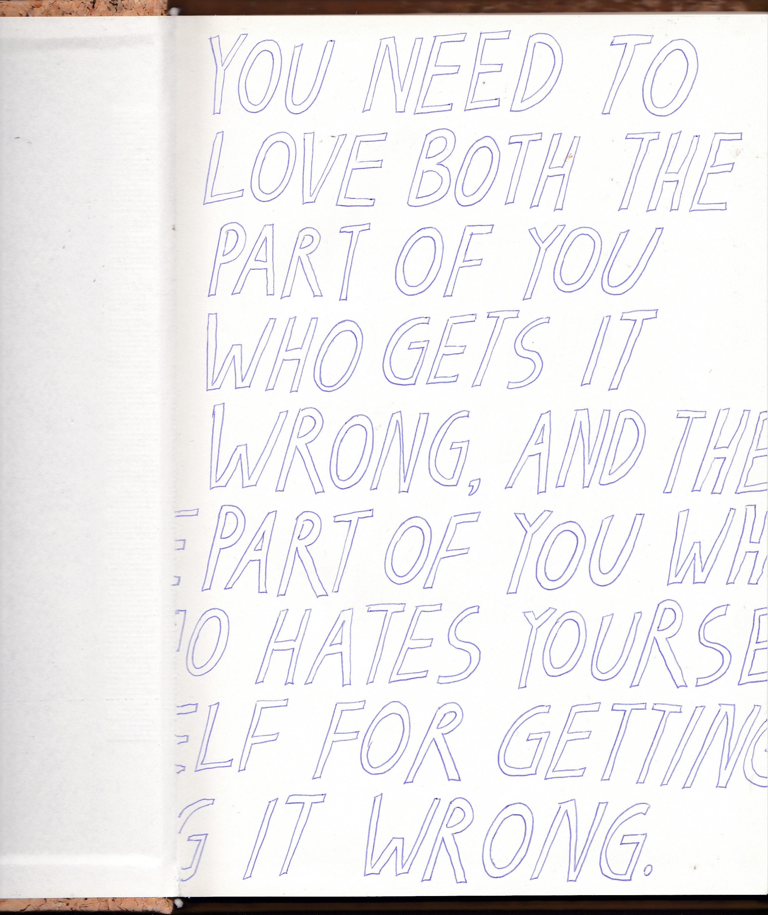 I move through my days and there is a voice that interrupts incessantly: I hate myself. It announces it in bold. A reminder. A warning? Don’t have too much fun. No matter how good it gets, I can always crawl back to safety. I can always crawl back into the arms of this belief. I can choose it whenever I want to. It’s there, waiting.
